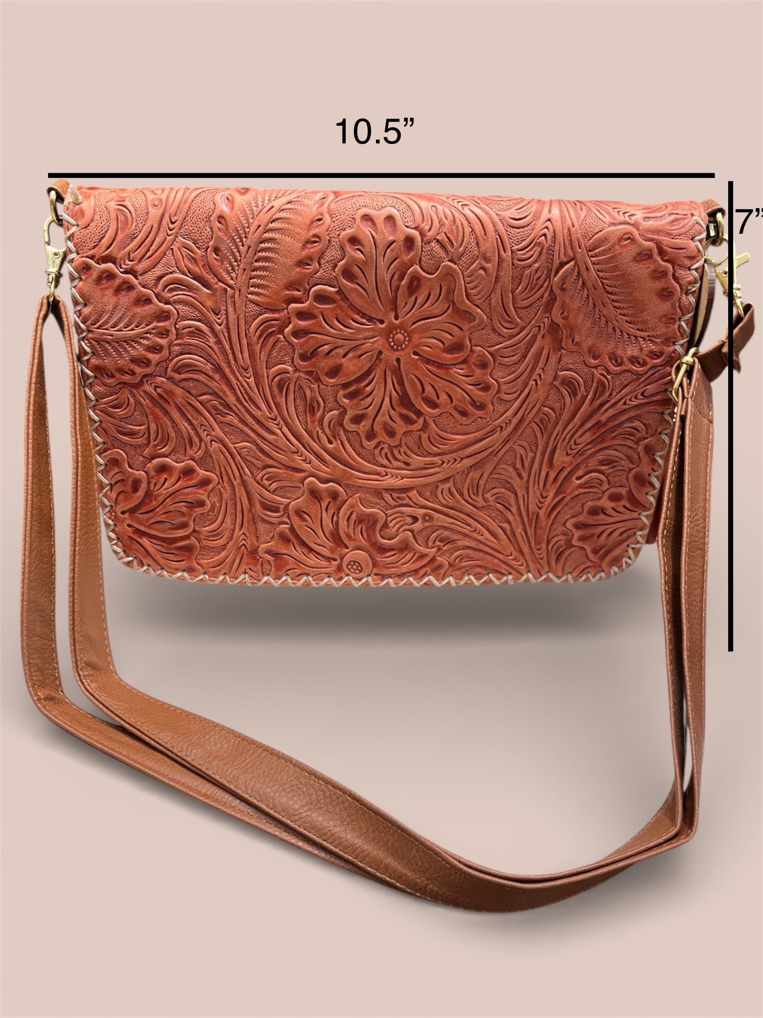 Warm western charm meets everyday function. This genuine leather crossbody features hand-tooled floral detailing and a rich sunset tone that makes every outfit stand out. Compact, lightweight, and built to age beautifully with wear.